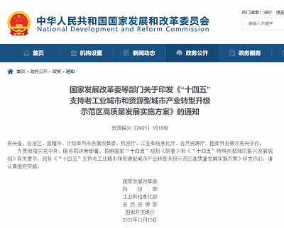 “十四五”支持老工業(yè)城市和資源型城市 產(chǎn)業(yè)轉(zhuǎn)型升級示范區(qū)高質(zhì)量發(fā)展實施方案