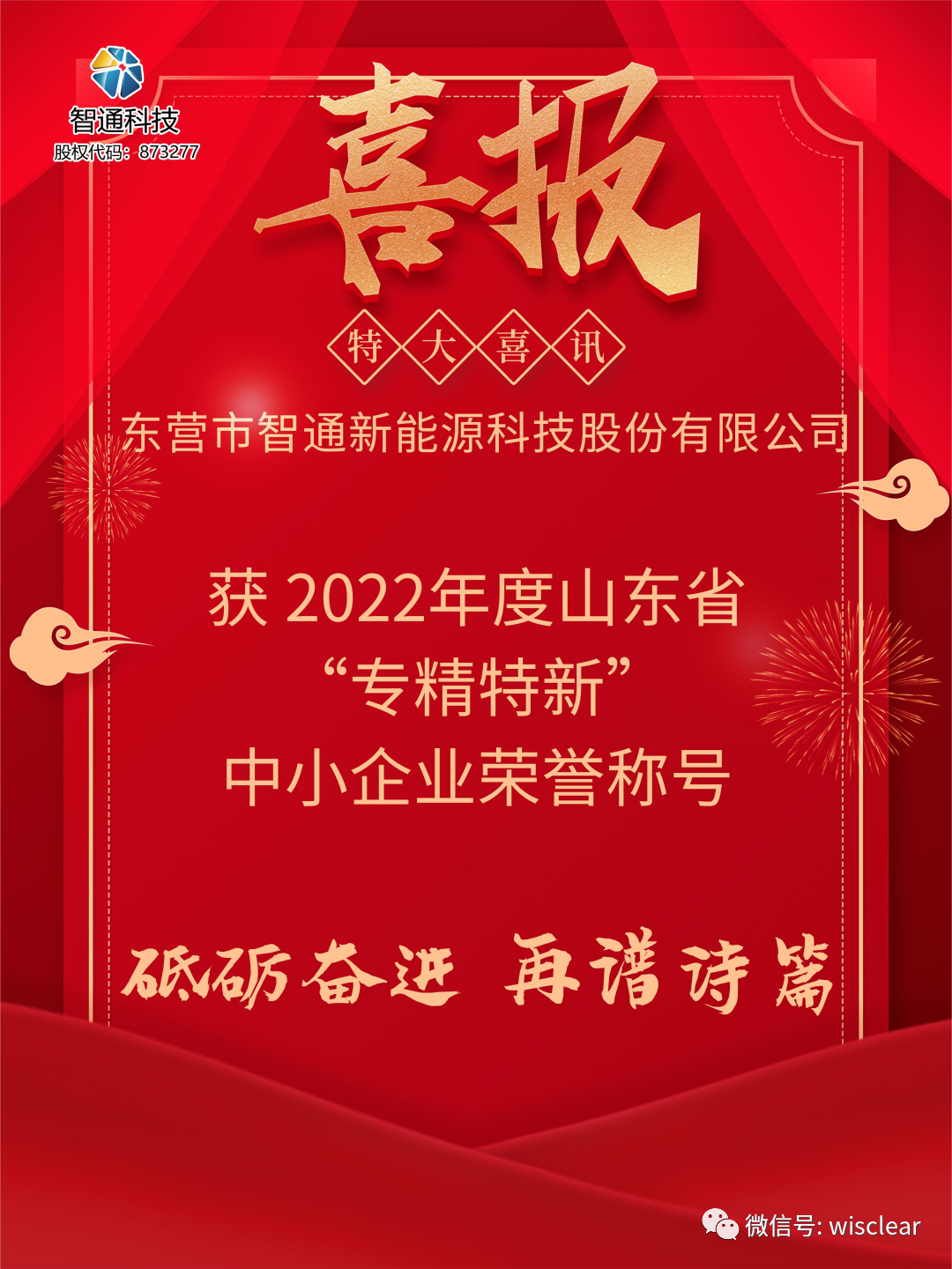 智通科技榮獲2022年度山東省“專精特新”企業(yè)榮譽稱號